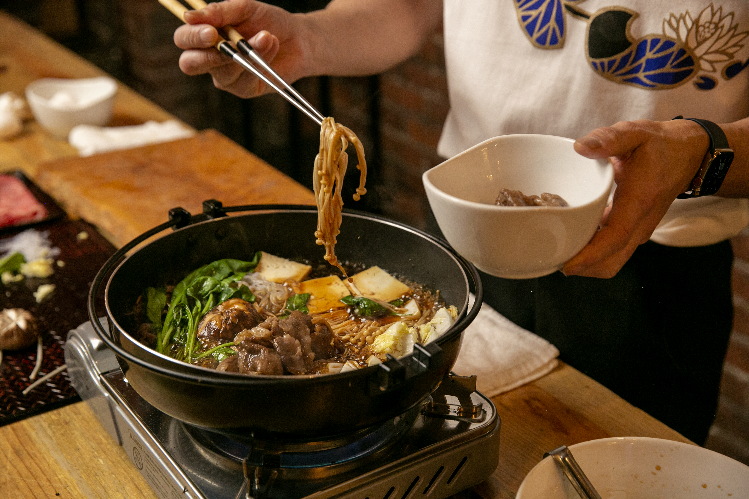 Sukiyaki terbaik disantap langsung dari panci panas.